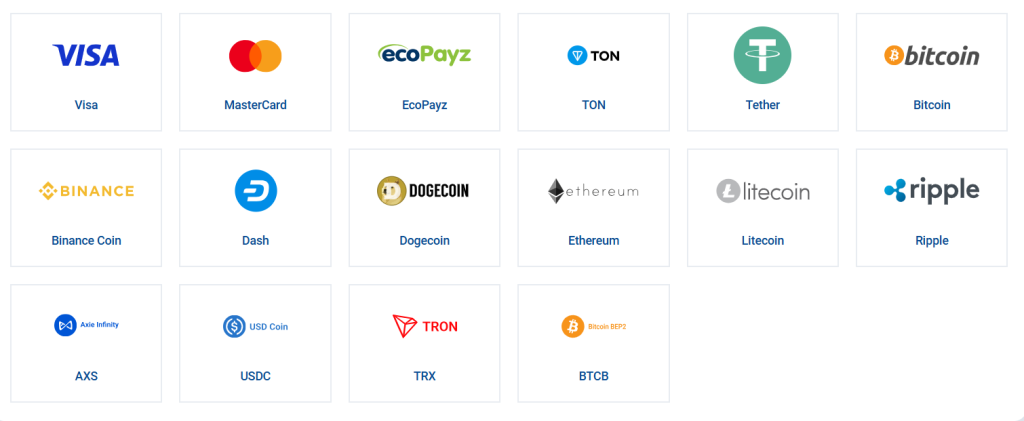 | Befizetés és kifizetés | Bankkártya, e-pénztárca, kriptovaluta | Átfutás: 5–30 perc, 0 % tranzakciós díj |